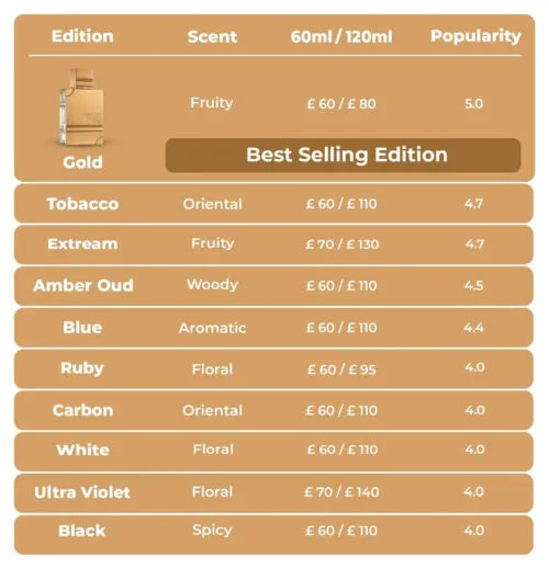 ALCOHOL DENAT. 80% VOL. AQUA (WATER) – FRAGRANCE – CITRONELLOL – CINNAMYL ALCOHOL PRODUCT OF AL HARAMAIN PERFUMES.