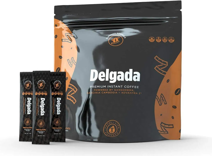 Delgada Premium Instant Coffee is a unique and invigorating beverage that combines the rich taste of coffee with the potential health benefits of Ganoderma Lucidum mushroom. This convenient pack contains 25 sachets, each weighing 2.8g, making it easy to enjoy a delicious cup of coffee on-the-go or at home. The coffee is powered by Ganoderma Cambogica, a variety of the Ganoderma mushroom known for its potential adaptogenic properties. With its smooth flavor and energizing qualities, Delgada Premium Instant Coffee offers a refreshing and uplifting experience for coffee lovers seeking a boost to their daily routine. Simply mix the contents of a sachet with hot water, and enjoy a satisfying cup of coffee infused with the unique essence of Ganoderma Lucidum.